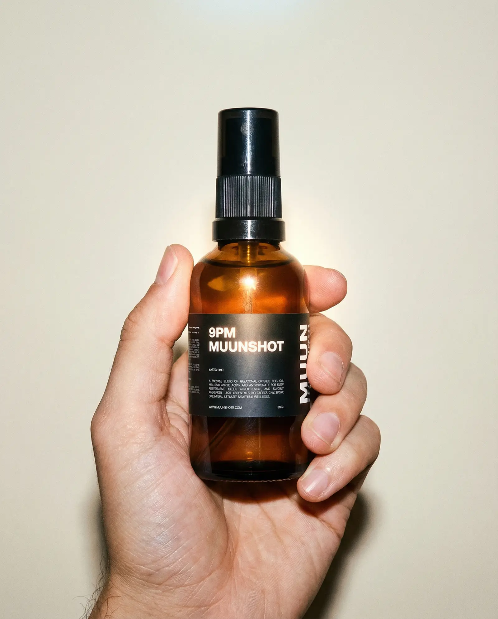 MUUNSHOTS 9PM is a precision-engineered oral spray that replaces slow-acting pills. Direct micro-absorption, one clean mist under the tongue delivers melatonin exactly where you need it, helping you fall asleep faster.